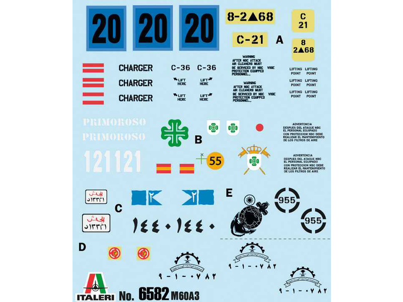 Plastikový model Italeri 6582 - tank M60A3 v měřítku 1:35 ke slepení. Délka modelu 228 mm, obtížnost 4. Balení obsahuje SKVĚLÉ OBTISKY PRO 5 VERZÍ.