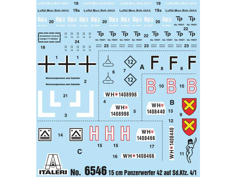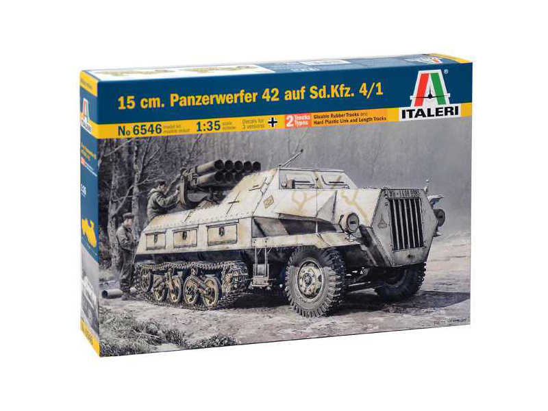 Plastikový model Italeri 6546 – raketomet Panzerwerfer 42 auf Sd.Kfz. 4/1 v měřítku 1:35 ke slepení. Délka modelu 171 mm, obtížnost 3. Balení obsahuje SKVĚLÉ OBTISKY PRO 3 VERZE.