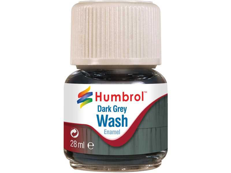 Emailová wash barva Humbrol Enamel v tmavě šedém provedení. S pomocí těchto barev lze do míst, která jsou na reálných předlohách běžně vystavena vlivům počasí nebo každodennímu opotřebení, přidat různé efekty, jako je špína, prach, rez a spousta dalších. Objem 28 ml.