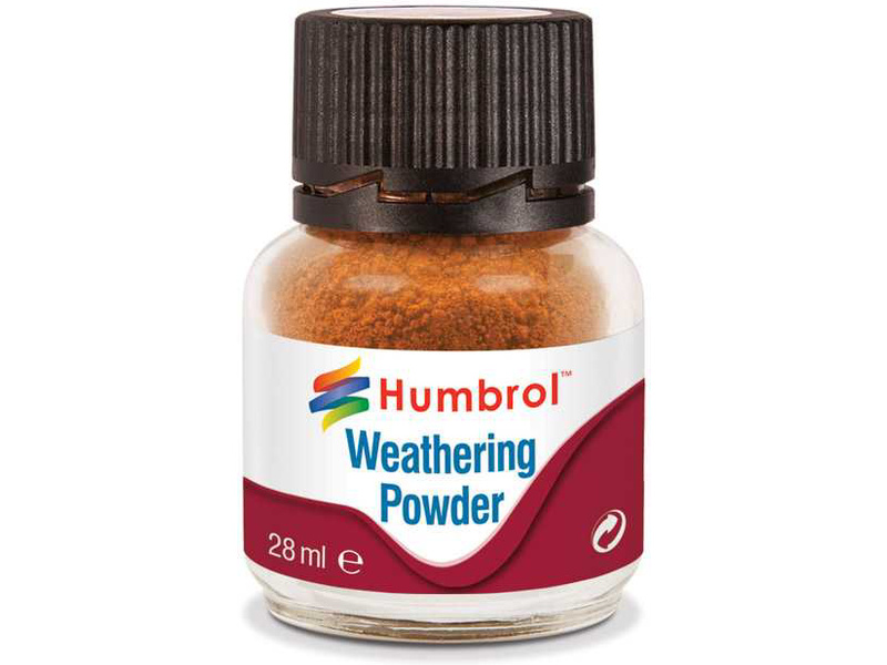 Práškový pigment Humbrol (Weathering Powder) rezavé barvy umožňuje vytvořit efekt opotřebení nejen na plastikových modelech. Obsah 28 ml.