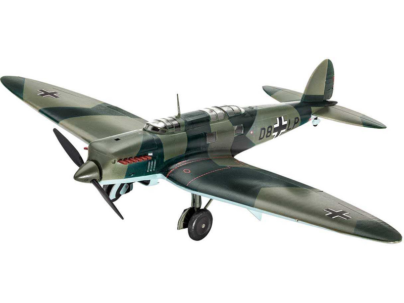 Plastikový model Revell 03962 - jednomotorové dopravní letoun Heinkel He70 F-2 v měřítku 1:72 ke slepení. Stavebnice obsahuje 82 dílků, rozpětí křídel 206 mm, obtížnost 4.