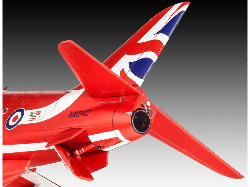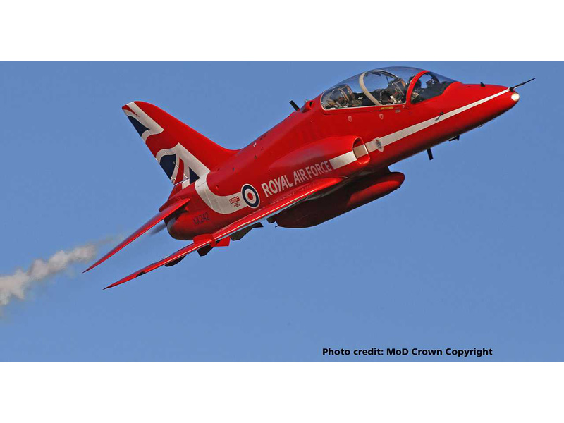 RAF Red Arrows je patrně nejznámějším akrobatickým týmem na světě a v roce 2014 obdržel letoun Hawk tohoto týmu nový design ocasní ploutve oslavující 50. sezónu. Tento model v měřítku plně kopíruje půvabné linie a červené, bílé a modré barevné schéma skutečného Red Arrows Hawk.