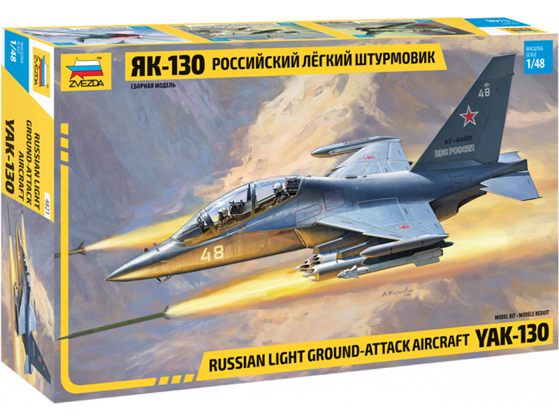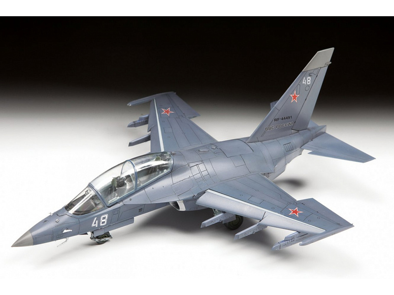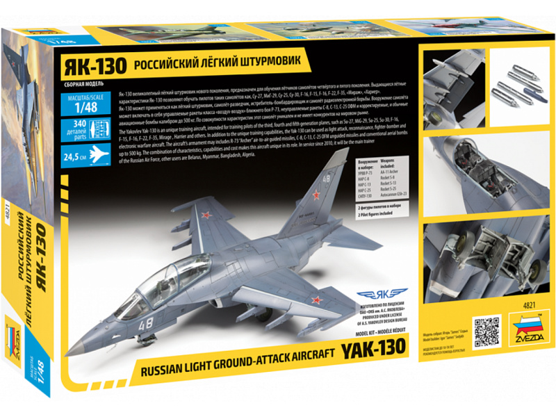 Plastikový model Zvezda 4821 - letadlo Jakovlev Yak-130 v měřítku 1:48 ke slepení. Stavebnice obsahuje 340 dílků, délka 245 mm.