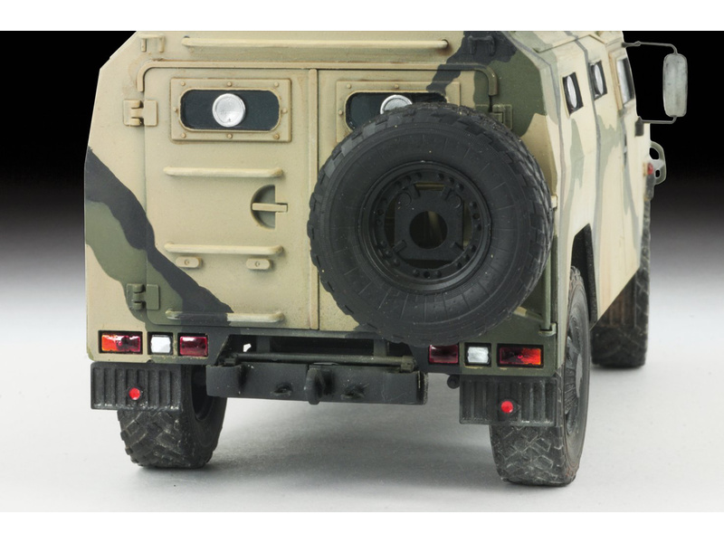 Plastikový model Zvezda 3682 - ruské speciální obrněné vozidlo GAZ 233014 s protitankovým systémem Kornet D v měřítku 1:35 ke slepení. Stavebnice obsahuje 236 dílků, délka 162 mm, obtížnost 3.