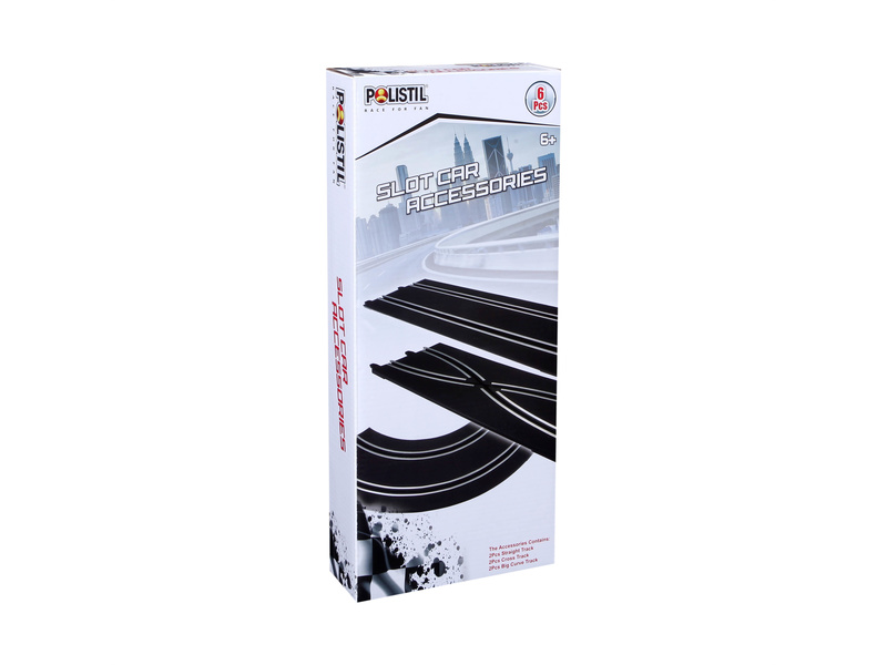Balení obsahuje 6 traťových dílů - 2 x zatáčka, 2 x křížení tratí, 2 x rovinka