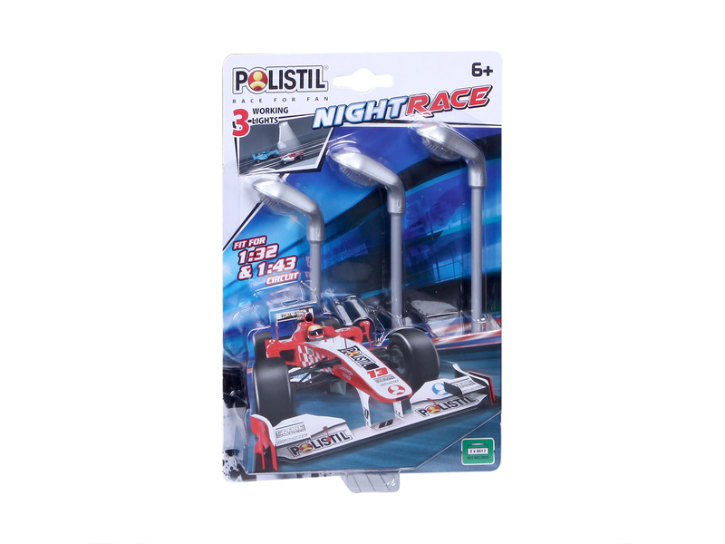 Polistil Stožár osvětlení (3 ks). Funkční osvětlení kolem tratě autodráh Ninco 1:43. Pro zprovoznění osvětlení je nutné doplnit 3x baterii AG13.
