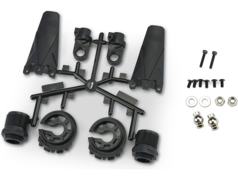 Náhradní plastové součásti tlumiče Pro-Line PowerStroke HD. Kryty, misky, kulové čepy, montážní součásti.