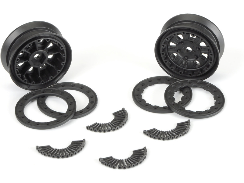 Balení obsahuje 2x disk, 4x Beadlock kroužek, 64x šroub 2x9,5 mm.