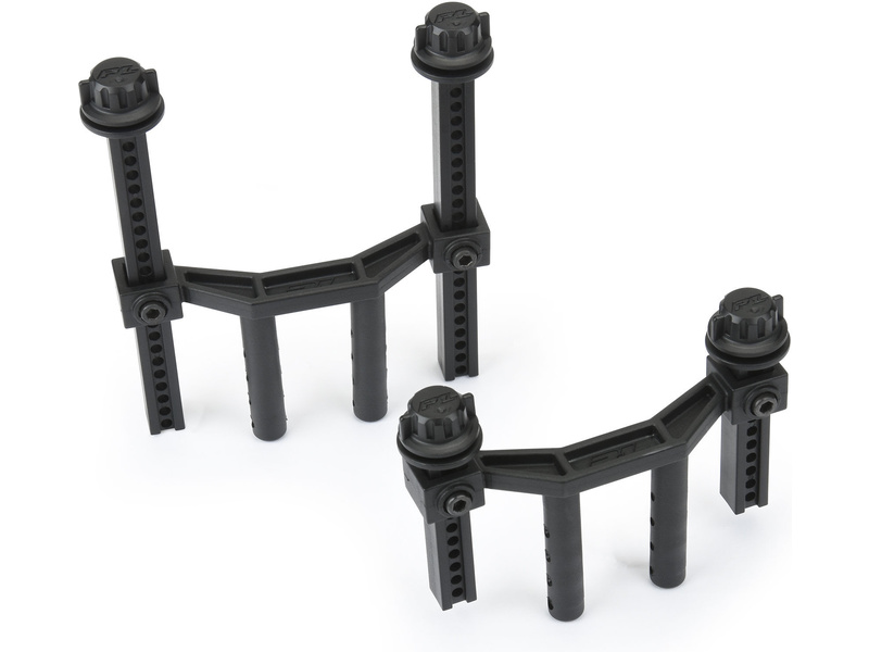 Pro-Line pokračuje v inovacích s dalšími nezbytnými doplňky pro váš Monster Truck. Zcela nová sada pro upevnění karoserie Pro-Line obsahuje nastavitelné držáky, takže můžete na svůj RC model auta perfektně upevnit jakoukoli karoserii! Namísto použití klasických sponek, které se vždy ztratí a ohýbají, Pro-Line Extended Body Mount obsahuje revoluční systém upevnění. Už žádné bodnutí do prstu! Stačí zašroubovat přiložený stavěcí šroub do držáku, umístit O-kroužek na šroub a namontovat karoserii jako obvykle.