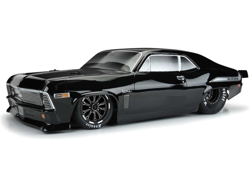 Pro-Line karosérie černá 1969 Chevrolet Nova Drag Car, pro RC modely aut v měřítku 1:10, rozvor 335mm, délka 561mm, výška 147mm. Vyrobeno z odolného lexanu.