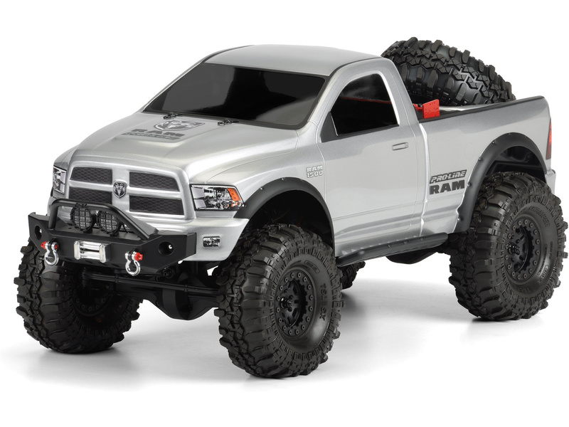 Pro-Line karosérie RAM 1500 pro RC modely aut Crawler v měřítku 1:10. Pro-Line má něco nového pro všechny fanoušky skalního plazení: RAM 1500! Tato okarosérie RAM je ideální pro to, aby vašemu crawleru dodalo jedinečný vzhled mezi davem Jeepů a Fordů. Karoserie RAM 1500 má oblast ložného prostoru na zádi vybavenou speciálně pro náhradní pneumatiku a také obsahuje lemy blatníků podobné těm, které se nacházejí na nákladních automobilech. Tato licencovaná karosérie má výrazný styl RAM 1500, který musíte mít pro váš 1:10 rock crawler. Objednejte si svůj vlastní a začněte jej připravovat co nejdříve!