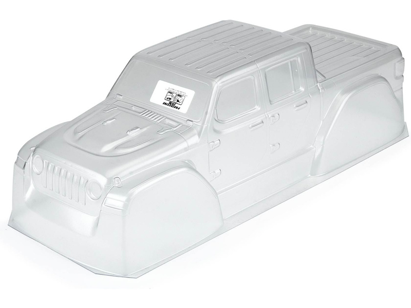 Pro-Line karosérie čirá Jeep Gladiator Rubicon, pro RC modely aut Short Course a Monster Truck v měřítku 1:10, rozvor 330mm, výška 478mm, šířka 142mm. Vyrobeno z odolného lexanu.
