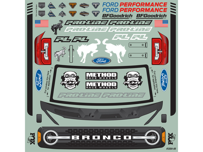 Pro-Line čirá karosérie v měřítku 1:8 Ford Bronco 2021, se výborně hodí na podvozky RC modelů aut Maxx, E-Revo 2.0. Jednodílná karoserie Bronco vyžaduje pro montáž použít prodloužené držáky karoserie Pro-Line Extended Body Mount. Dodává se včetně podrobných samolepek a okenních masek.