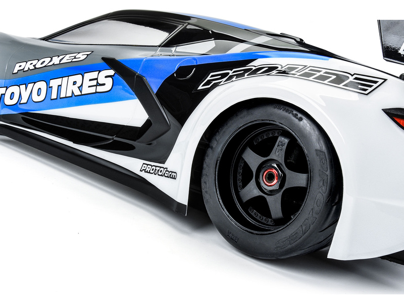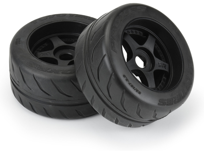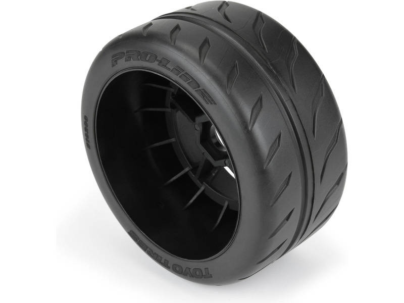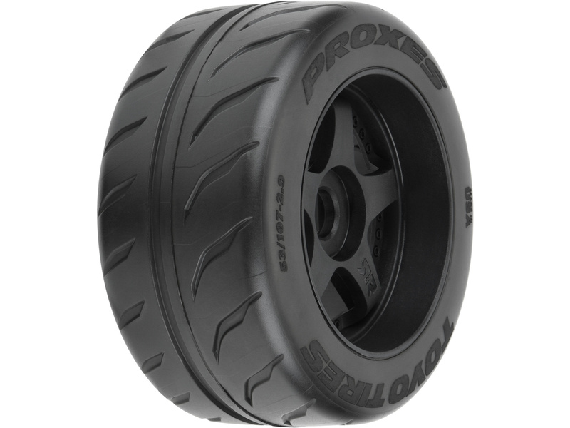 Kompletní kola Pro-Line pro RC modely aut 1:7. Rozměr ⌀107x53 mm. 5 paprskový disk. Licencované silniční pneumatiky Toyo Proxes R888R 2.9" BELTED, tvrdost směsi S3 (měkká). Unašeč je šestihran 17 mm.
