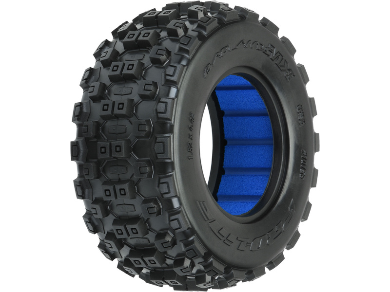 Pneumatiky Pro-line Badlands MX 2.2"/3.0" Short Course, pro RC modely aut 1:10. Rozměry ⌀112x46mm. Směs M2 (střední). Vložka Closed Cell.