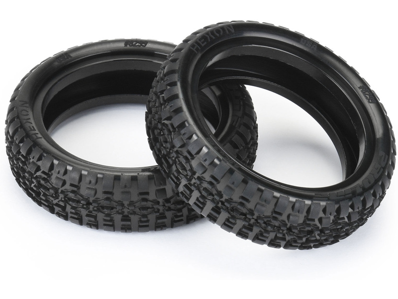 Pneumatiky Pro-line 2.2" Hexon CR3 Carpet 2WD přední (2 ks), pro RC modely aut 1:10 Buggy pro závody na koberci. Rozměry ⌀76x22mm. Směs střední CR3 (Medium Carpet).