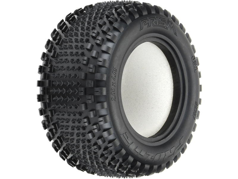 Pneumatiky Pro-line 2.2" Prism T CR3 Carpet přední (2 ks), pro RC modely aut 1:10 Stadium Truck pro závody na koberci. Rozměry ⌀103x53mm. Směs střední CR3 (Medium Carpet).