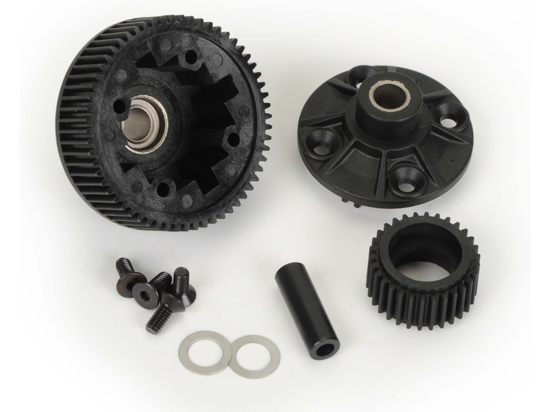 Náhradní díly pro RC auto Pro-Line PRO-2 SC a převodovky PRO-Series 32P a Performance: převodovka s diferenciálem. Obsahuje Hlavní ozubené kolo diferenciálu, vložené ozubené kolo, kryt diferencálu, šrouby a podložky.