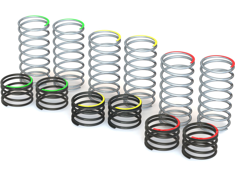 Sada tuningových pružin pro tlumič Pro-Line PowerStroke. Pozvedněte své tlumiče PRO636400 MAXX® PowerStroke na novou úroveň tím, že je vyladíte tak, aby odpovídaly vašim specifickým potřebám, díky pružinám s různou tuhostí. Smíchejte a spojte různé horní a spodní pružiny, abyste přizpůsobili své odpružení podmínkám. Tři různé horní a spodní tuhosti umožňují devět různých kombinací.