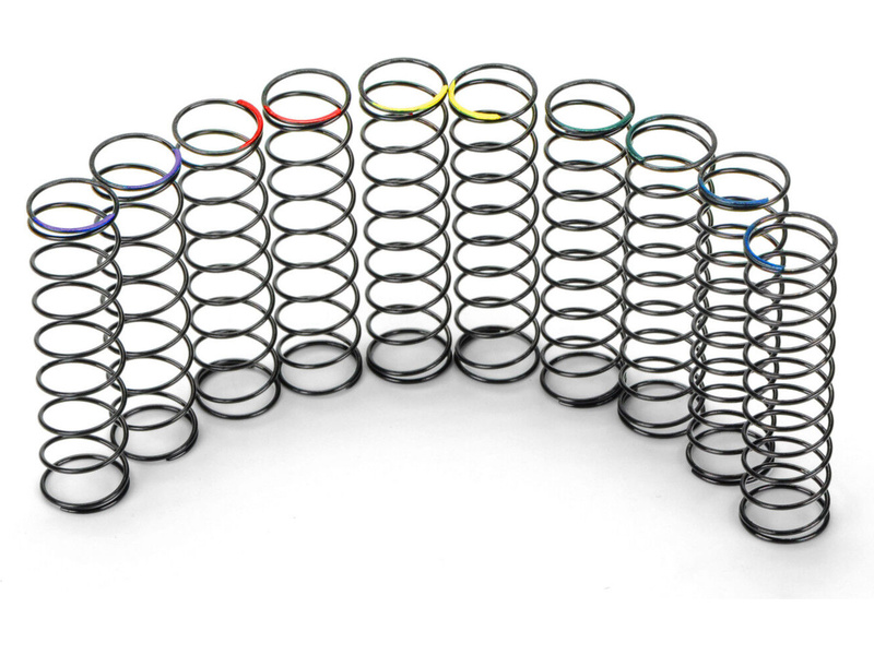Pro-Line pružiny SC předních tlumičů (sada), pro přední tlumiče Pro-Spec (PRO630830). Od modré (super měkká), přes zelenou (měkká), žlutou (střední), červenou (tvrdá), až po fialovou (super tvrdou).