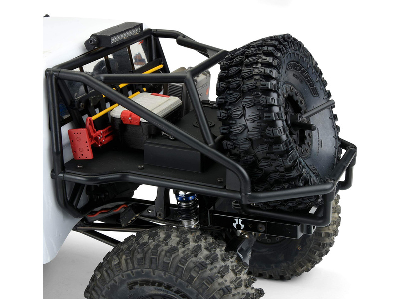 Zadní rámová konstrukce na korbu Pro-Line pro expediční a Crawler modely v měřítku 1:10. Vyrobeno z odolného nylonu. Součástí klece je držák pro náhradní kolo a držáky pro další maketové příslušenství (není obsahem balení).