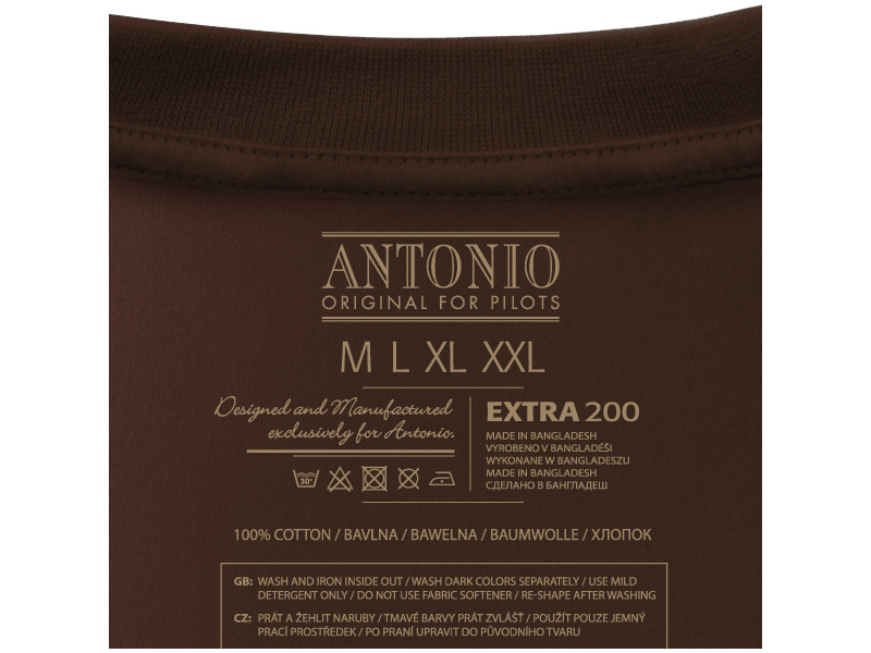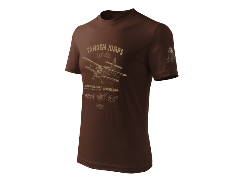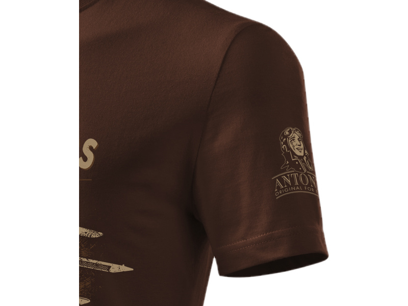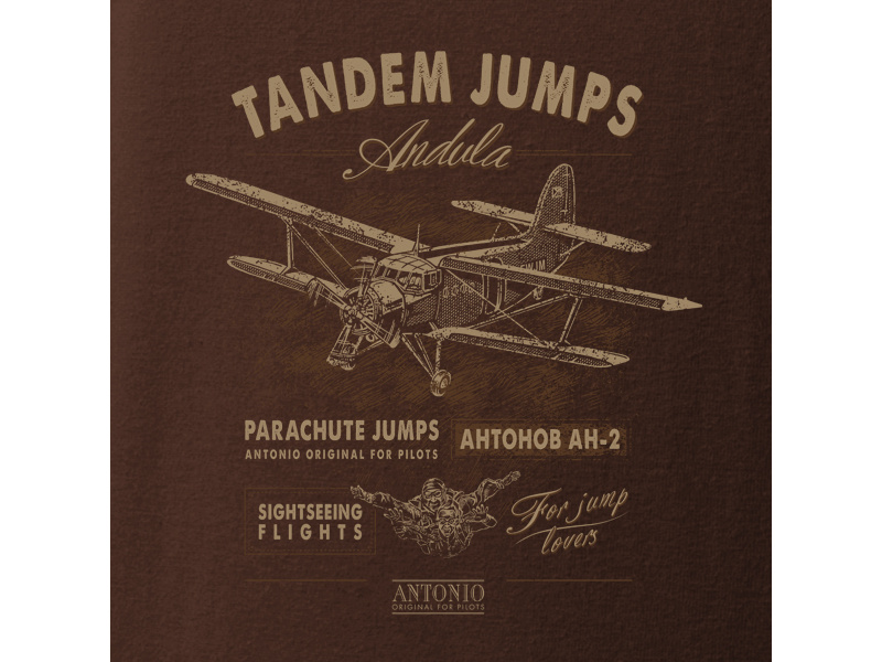 Pánské tričko s potiskem "Antonio dvouplošník Andula" pro piloty. Krátký rukáv, 100% bavlna se silikonovou úpravou je zárukou příjemného pocitu při nošení. Látka 200 g/m², pleteno single jersey, hnědá ořechová barva, luxusní dárkové balení.