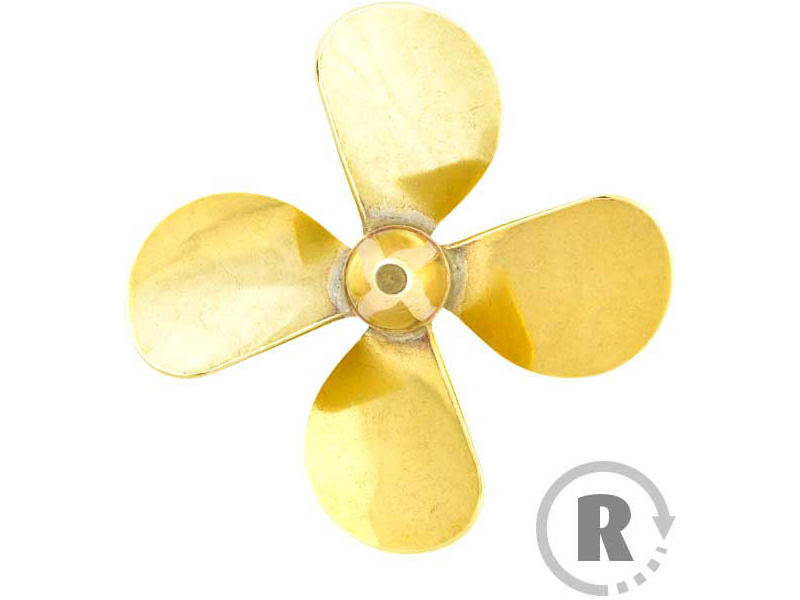 Raboesch lodní šroub tř.147, 120mm, M5, 4-listý pravý. Montáž na hřídel se závitem M5. Průměr 120mm, materiál mosaz pájená stříbrem.