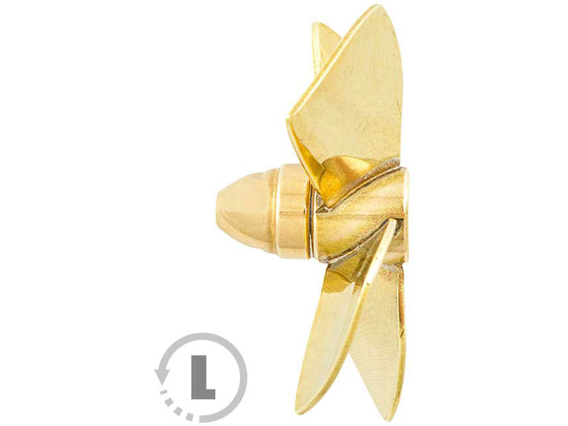 Raboesch lodní šroub tř.149 4-listý, průměr 40mm, směr otáčení levý, montáž na hřídel se závitem M4, materiál mosaz pájená stříbrem.