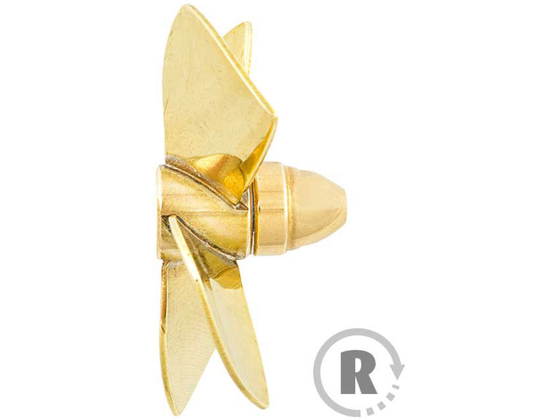 Raboesch lodní šroub tř.149 4-listý, průměr 60mm, směr otáčení pravý, montáž na hřídel se závitem M4, materiál mosaz pájená stříbrem.