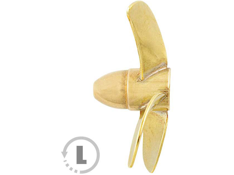 Raboesch lodní šroub tř.158 4-listý, průměr 65mm, směr otáčení levý, montáž na hřídel se závitem M5, materiál mosaz pájená stříbrem.