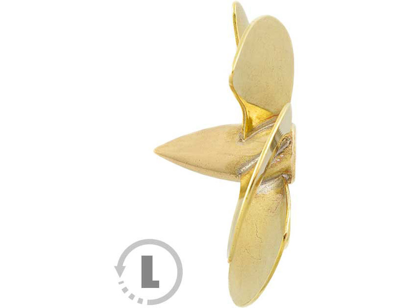 Raboesch lodní šroub tř.168 5-listý, průměr 25mm, směr otáčení levý, montáž na hřídel se závitem M4, materiál mosaz pájená stříbrem.