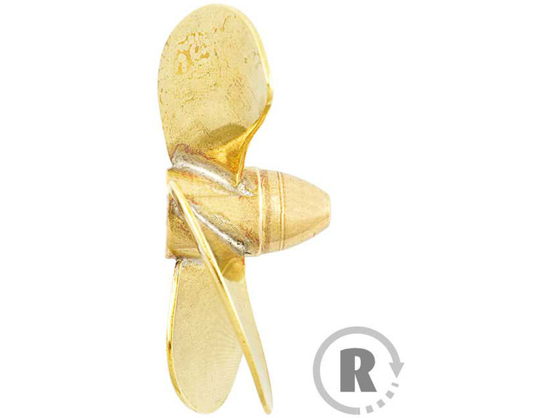 Raboesch lodní šroub tř.170 4-listý, průměr 25mm, směr otáčení pravý, montáž na hřídel se závitem M2, materiál mosaz pájená stříbrem.