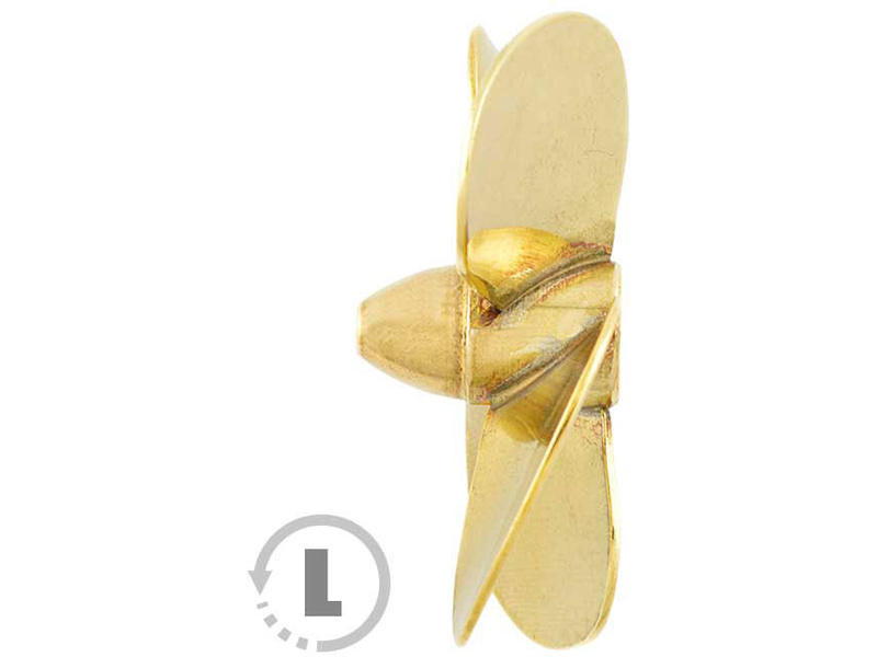 Raboesch lodní šroub tř.174 4-listý, průměr 30mm, směr otáčení levý, montáž na hřídel se závitem M4, materiál mosaz pájená stříbrem.