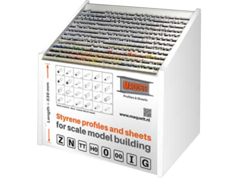 Prodejní displej s 285 druhy profilů o délce 330 mm. Vhodný pro přehledné vystavení modelářských profilů Raboesch.