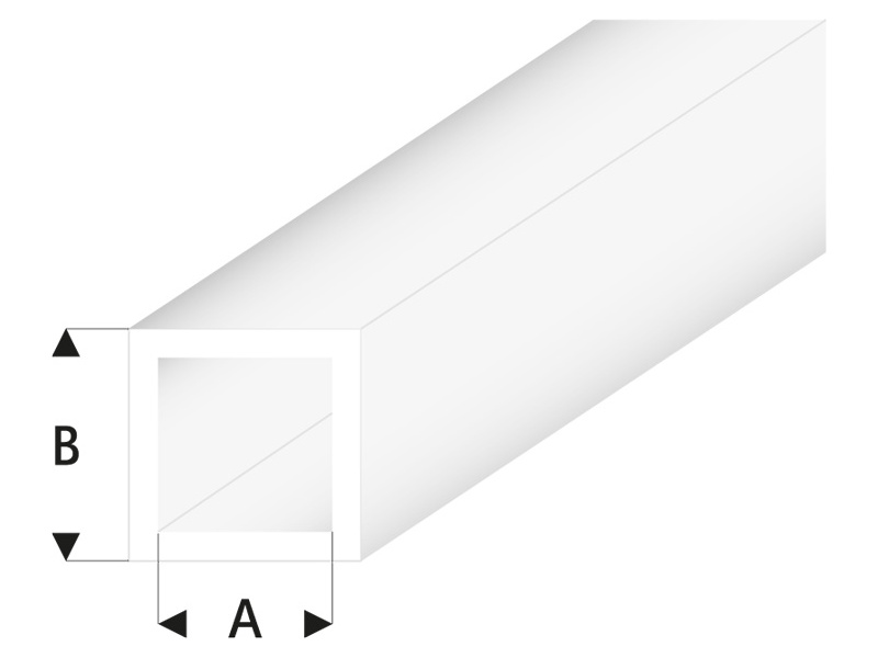 Čtvercová trubička z plastu ASA s vysokou mechanickou pevností, stálostí, odolností vůči UV, vodě, oleji. Materiál je dobře opracovatelný, vhodný pro barvení. Rozměry: 4 x 5 x 330 mm (A x B x délka), 5 ks, barva: transparentní.