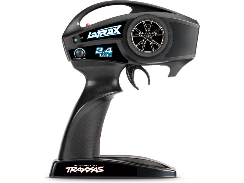 Model je řízen dvoukanálovou proporcionální volantovou RC soupravou LaTrax TQ v pásmu 2.4 GHz - provoz bez rušení. Vysílač je napájen pouze 4 AA články, volitelně můžete použít i nabíjecí NiMH akumulátory.
