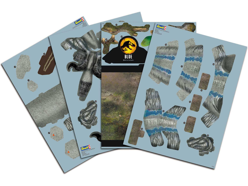 Prostorové 3D Puzzle Revell 00241 – Jurský park - Blue. Stavebnice má 50 dílků, výsledné rozměry modelu jsou 384x163x198 mm.