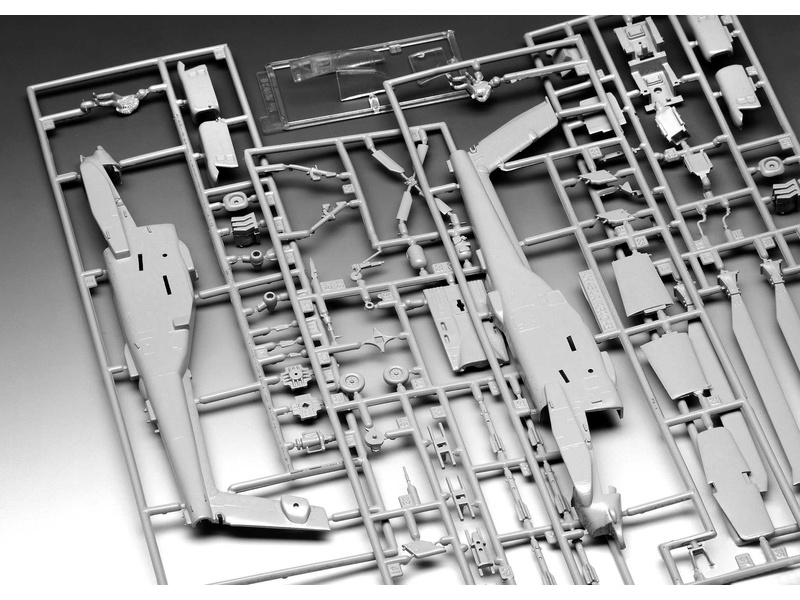 Revell plastikový model vrtulníku Boeing AH-64A Apache v měřítku 1:72 ke slepení. Stavebnice obsahuje 79 dílků, průměr rotoru 201 mm, obtížnost 4.