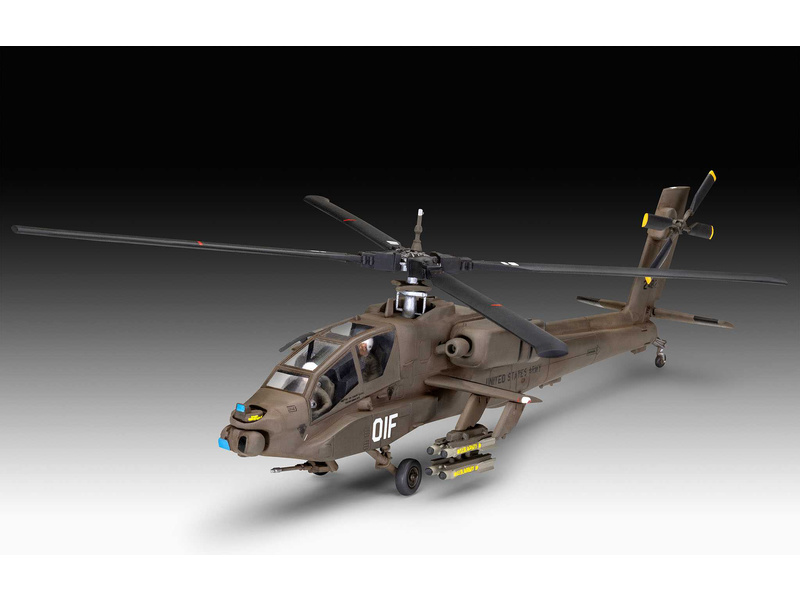 Revell plastikový model vrtulníku Boeing AH-64A Apache v měřítku 1:72 ke slepení. Stavebnice obsahuje 79 dílků, lepidlo, štětec, barvičky, průměr rotoru 201 mm, obtížnost 4.
