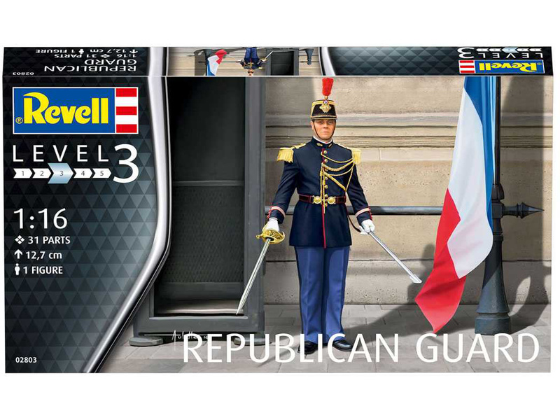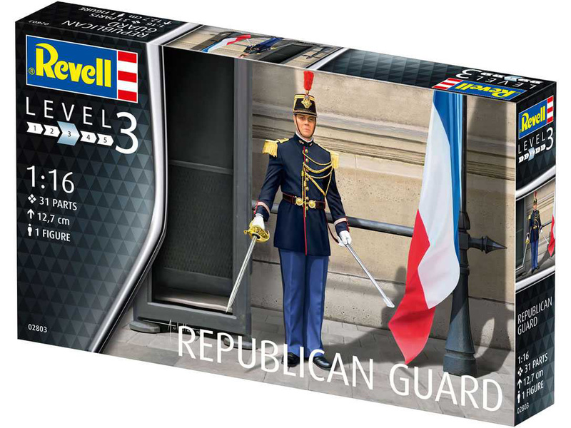 Plastikový model Revell 02803 – figurka republikánského gardisty v měřítku 1:16 ke slepení. Výška figurky 127 cm, obtížnost 3. Stavebnice obsahuje 31 dílků.