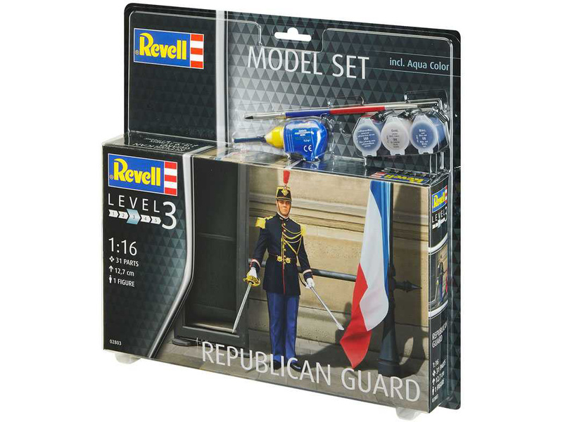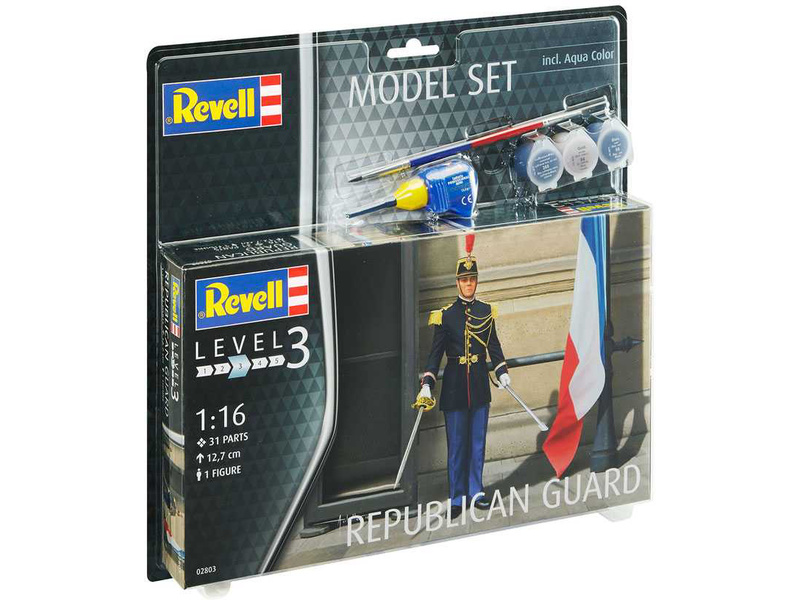 Plastikový model Revell 62803 – figurka republikánského gardisty v měřítku 1:16 ke slepení. Stavebnice obsahuje 31 dílků, výška 127 mm, obtížnost 3. Ideální pro doplnění plastikových modelů či diorámat.