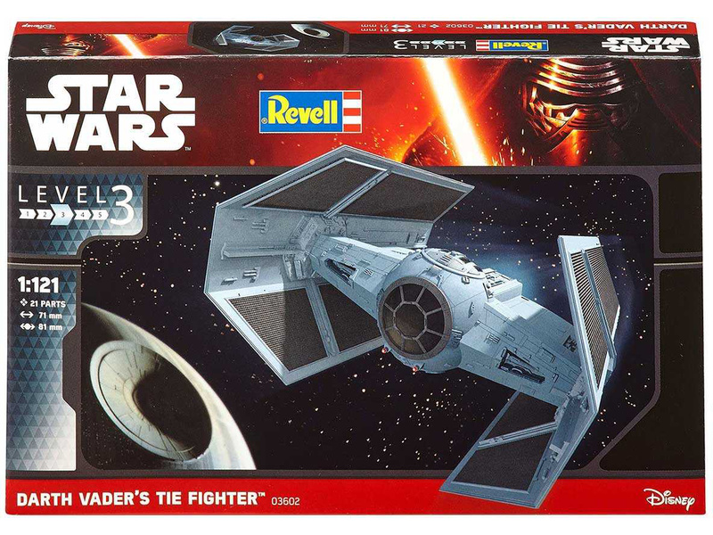 Plastikový model Star Wars Revell 03602 - Dath Vader´s TIE Fighter v měřítku 1:121 ke slepení. Stavebnice obsahuje 21 dílků, délka 71 mm, obtížnost 3.
