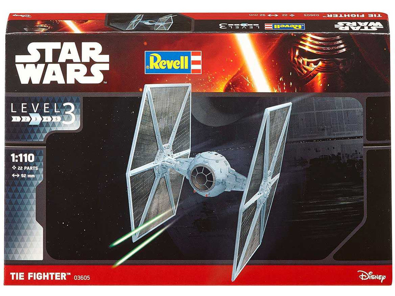 Plastikový model Revell 88925 - Star Wars TIE Fighter v měřítku 1:110 ke slepení. Stavebnice obsahuje 22 dílků, délka 92 mm, obtížnost 3