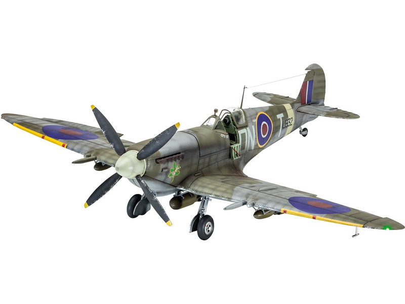 Stavebnice letounu Spitfire Mk.IXc. Tato letadla se nevyužívala jenom v roli záchytných stíhacích letounů, ale také jako stíhací bombardéry pro útoky na pozemní cíle.