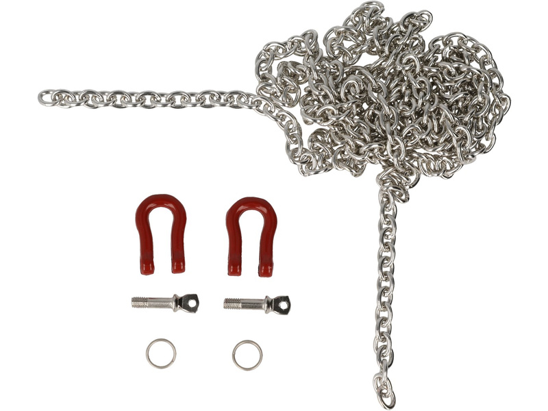 Robitronic Vám nabízí detailně zpracovanou maketu řetězu s oky pro RC modely aut. Řetěz má šířku 4 mm a délku 1100 mm, rozměry oka jsou 19 x 12 mm o průměru 3 mm. Řetěz je vyrobený z kovové slitiny o hmotnosti 43 g.