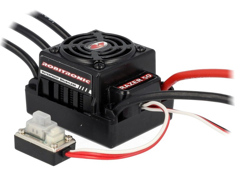 Střídavý regulátor Razer 50A od Robitronic je určen pro RC auta 2WD v měřítku 1:10. Napájení akumulátorem 2 - 3S LiPo, nebo 6-9 čl. NiMH, voděodolné provedení. Široká škála nastavení tlačítkem SET, nebo přes programovací kartu.