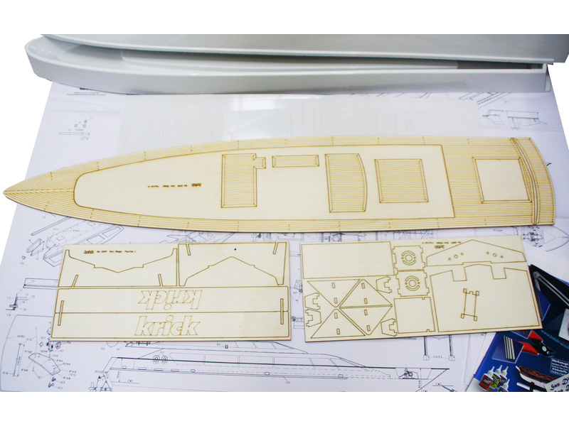 Pro realistické zhotovení paluby jsou ve stavebnici laserem vyřezané díl paluby, stojánek lodi, přepážky do trupu, lože motorů a pod.