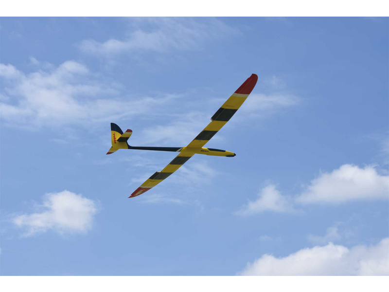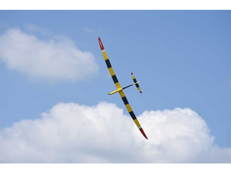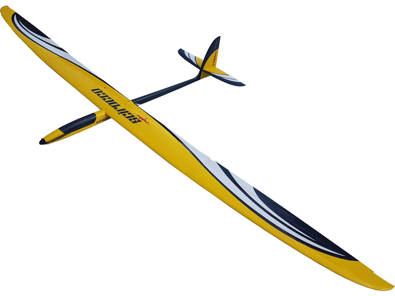 Trup je laminátový, vyztužený uhlíkovými výztuhami, křídlo je 4-klapkové se vztlakovými klapkami a křidélky. Výškovka je plovoucí, dvoudílná, křídlo se dělí na 3 části. Set je ve verzi ARF bez elektroniky a pohonu. Budete potřebovat doplnit si do modelu motor, regulátor, kužel se sklopnou vrtulí, serva s kabely, baterii a RC soupravu.