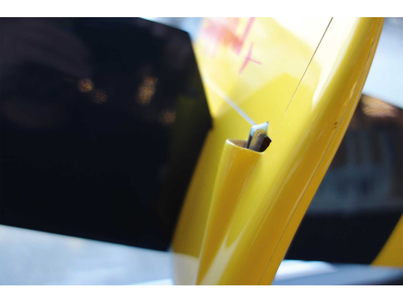 Plovoucí výškovka se nasouvá na uhlíkovou trubičku o průměru 5mm. Směrovka má páku kormidla uvnitř trupu, ocasní plochy jsou proto aerodynamicky naprosto čisté.