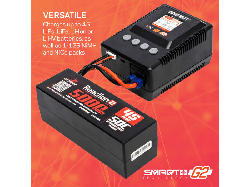 Užijte si výhod systému Spektrum Smart G2 za méně peněz s nabíječkou Spektrum™ S155 Smart G2 AC. Zajišťuje snadné a přesné nabíjení, zejména u Spektrum baterií SMART, kde poskytuje jednoduché automatické nabíjení ihned po připojení, výstupní porty IC3® a IC5® (kompatibilní s EC3/EC5) a další.